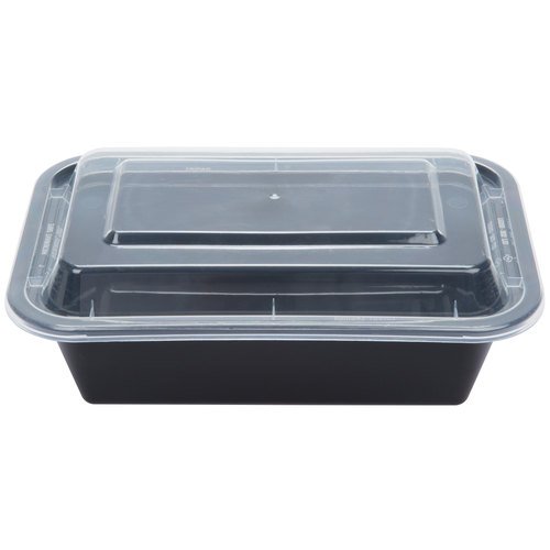 7x5x2 Microwaveable Container Black Base Combo Pack 24 oz