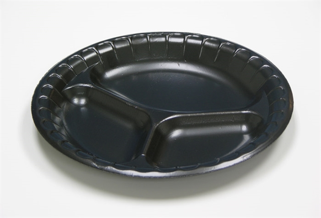 9″ 3 Compartment Foam Plate Black