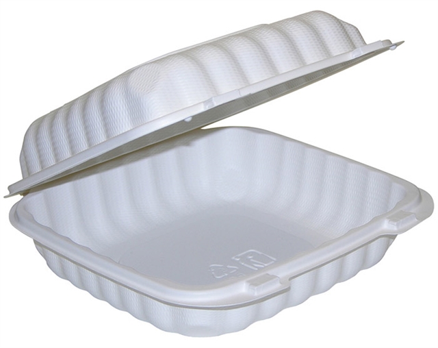 9x9x3 1-Comp Hinged Lid Container MFPP Mineral Filled Polypropylene