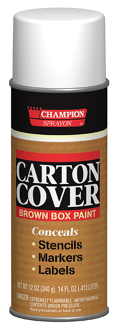 Champion Sprayon Carton Cover Brown Box paint completely covers stencils, markers, wax pencils and labels on packing cartons and corrugated cardboard. Special tip allows fast application. Superior high-solids formula is non-toxic after it is applied and allowed to dry thoroughly.